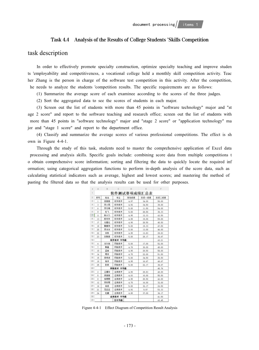 Task 4.4 Analysis of the Results of College Students ,Skills Competition