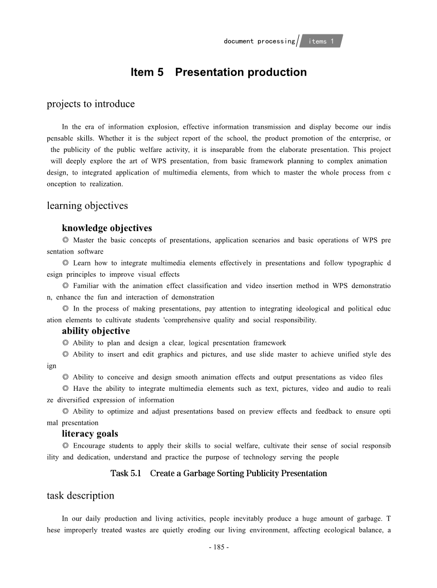 Task 5.1 Create a Garbage Sorting Publicity Presentation
