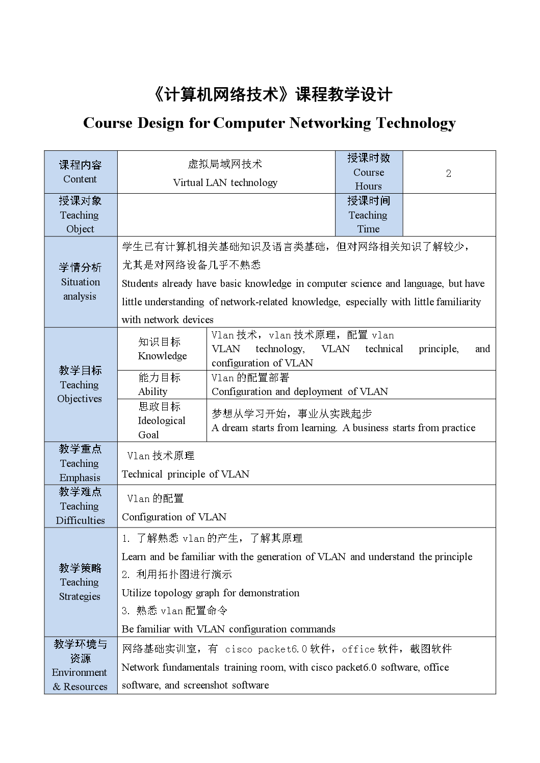 《计算机网络技术》教案——虚拟局域网技术 Teaching Plan of Computer Networking Technology - Virtual LAN Technology
