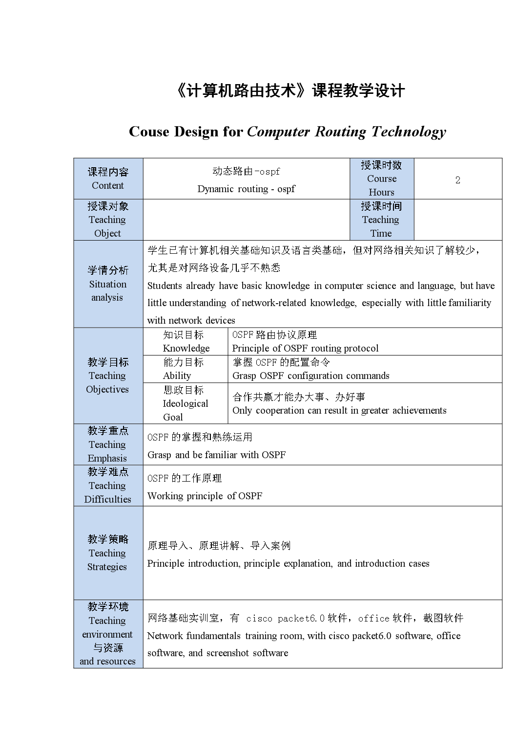 《计算机网络技术》教案——动态路由-ospf Teaching Plan of Computer Networking Technology - Dynamic Routing-ospf