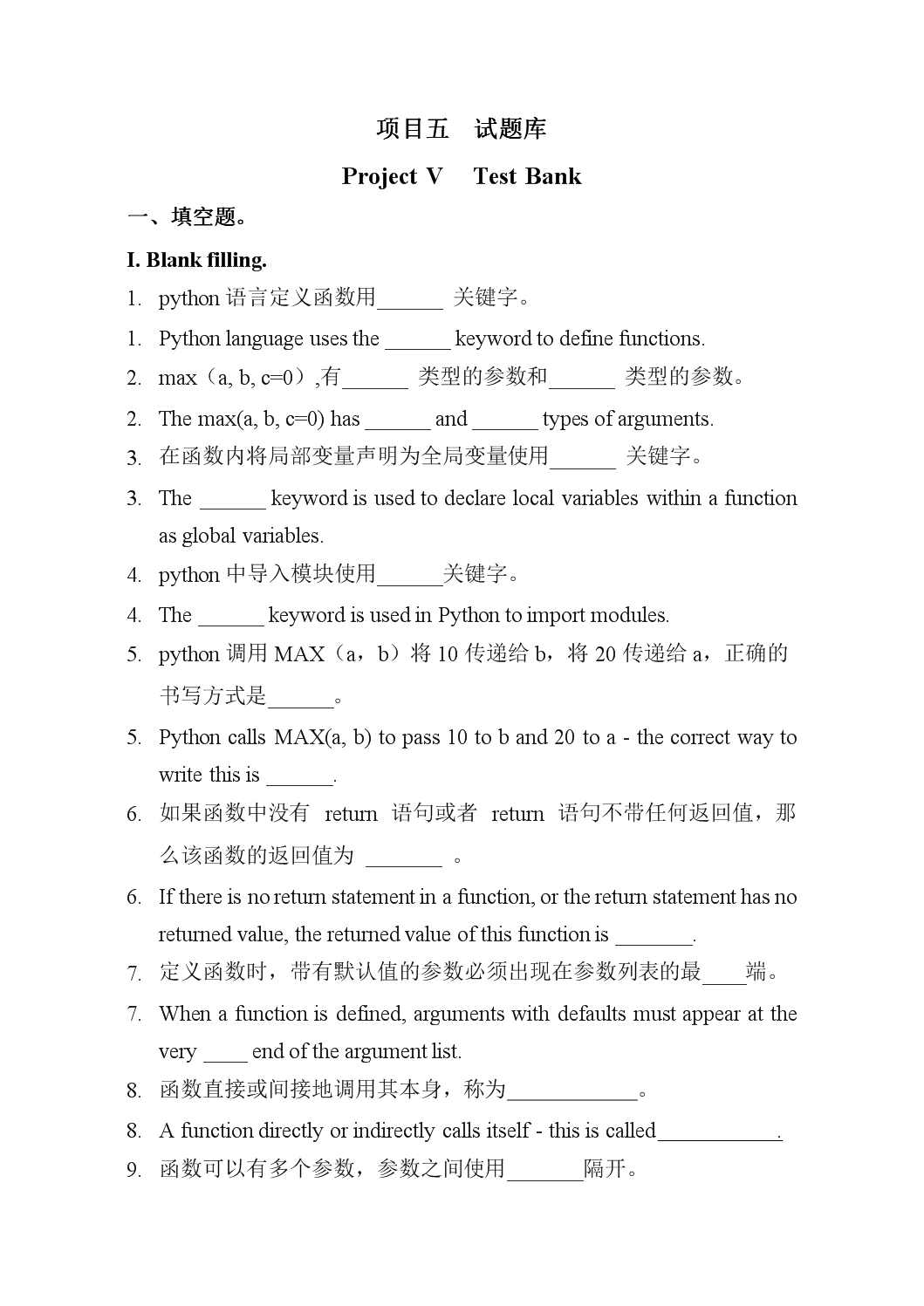 项目五 试题库-Project V Test Bank