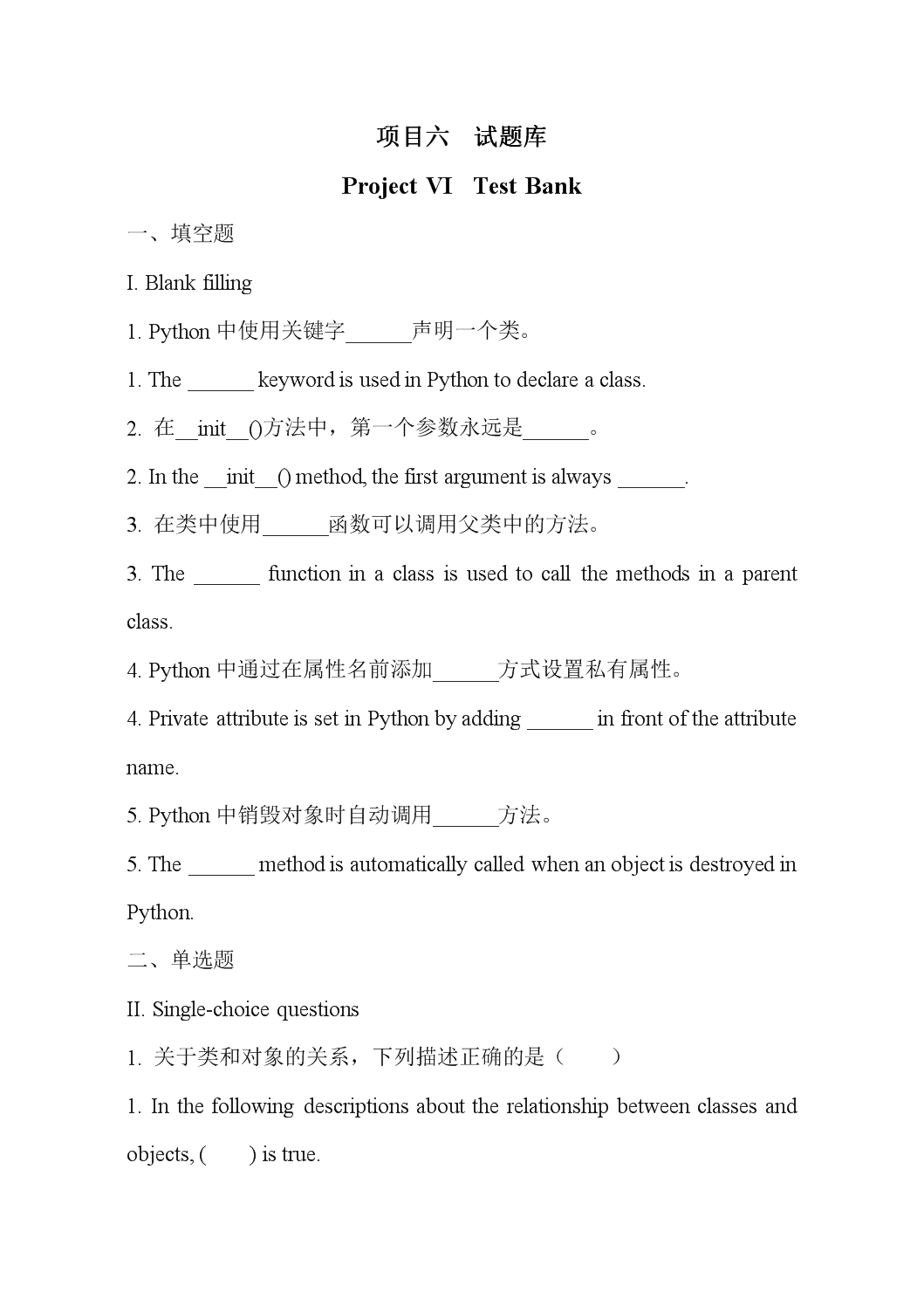 项目六 试题库-Project VI Test Bank